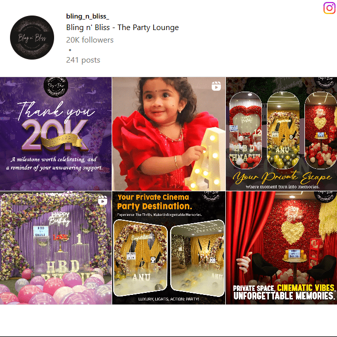 Developed a monthly content calendar with strategic posts, reels, and videos highlighting celebrations, movie nights, offers, and experiences to drive engagement, visibility, and audience growth.
