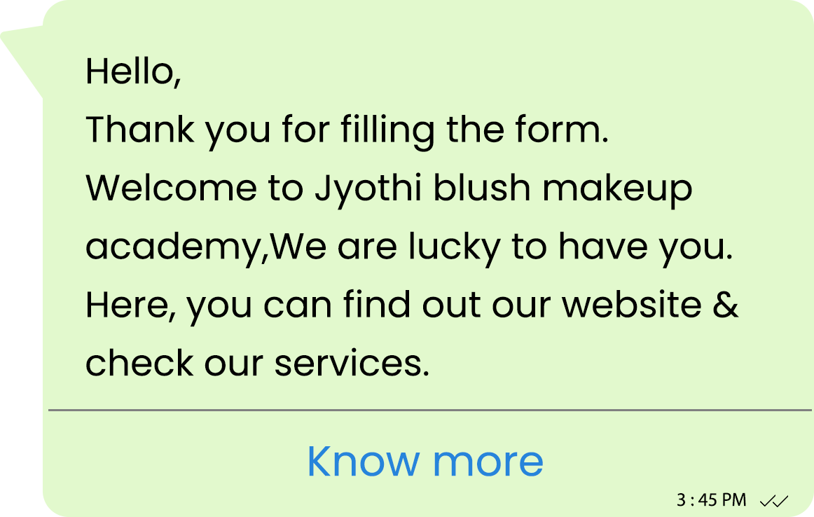 We enable Jyothi Blush to share instant course updates, batch announcements, offers, demo schedules, and student alerts through Bulk WhatsApp API, ensuring faster communication, automation, reliable notifications, engagement, and stronger connections with students and clients.