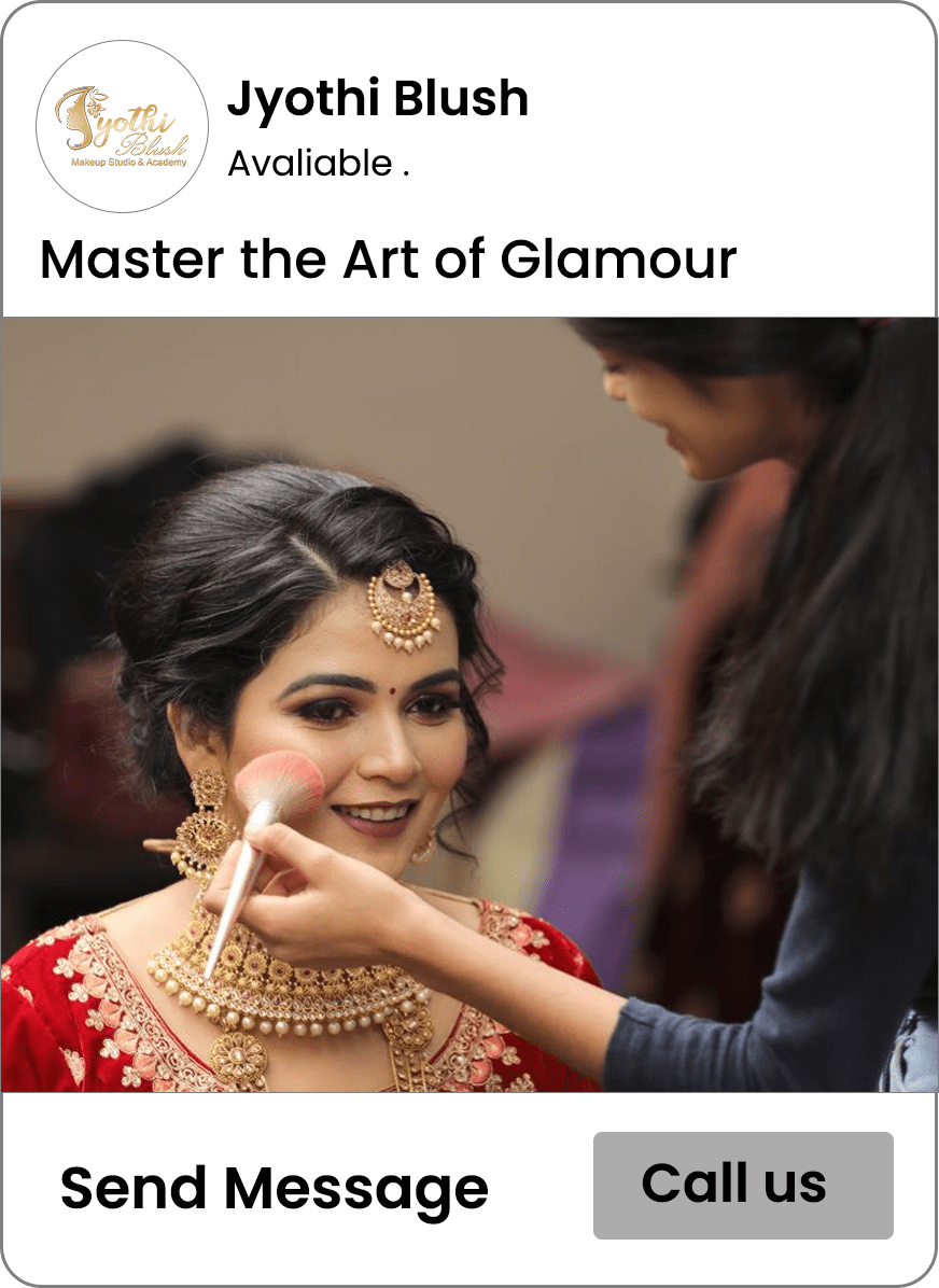 “Jyothi Blush Makeup Studio & Academy is an internationally certified, award-winning makeup brand in Hyderabad, led by Jyothi Reddy. Offering professional bridal services and a government-registered ISO-certified academy, it empowers artists through expert training, modern techniques, and industry-ready courses that turn creativity into successful careers, with hands-on demos, complimentary facilities, and career-focused mentorship. Powered by Galaxy Tech Solutions.”