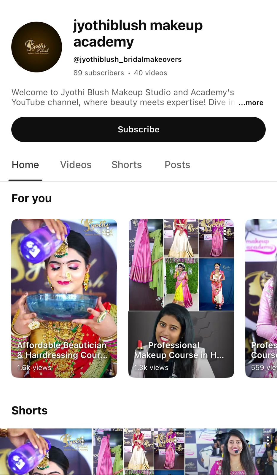 promoting bridal services and makeup courses, helping Jyothi Blush