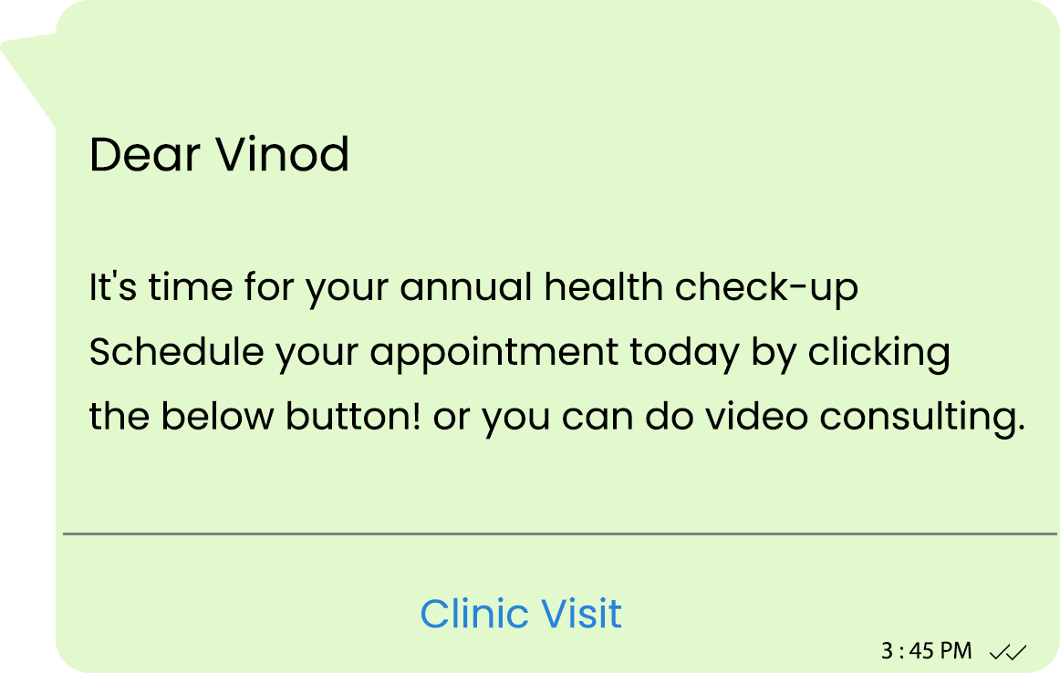 We help Medicover Hospitals use Bulk WhatsApp API to deliver instant updates, health tips, service announcements, and patient alerts. This ensures timely communication, higher engagement, faster responses, improved awareness, and trusted, reliable connections between hospitals and patients across every touchpoint.