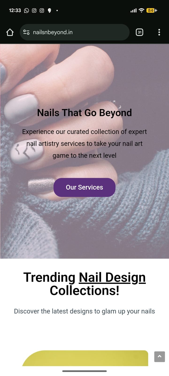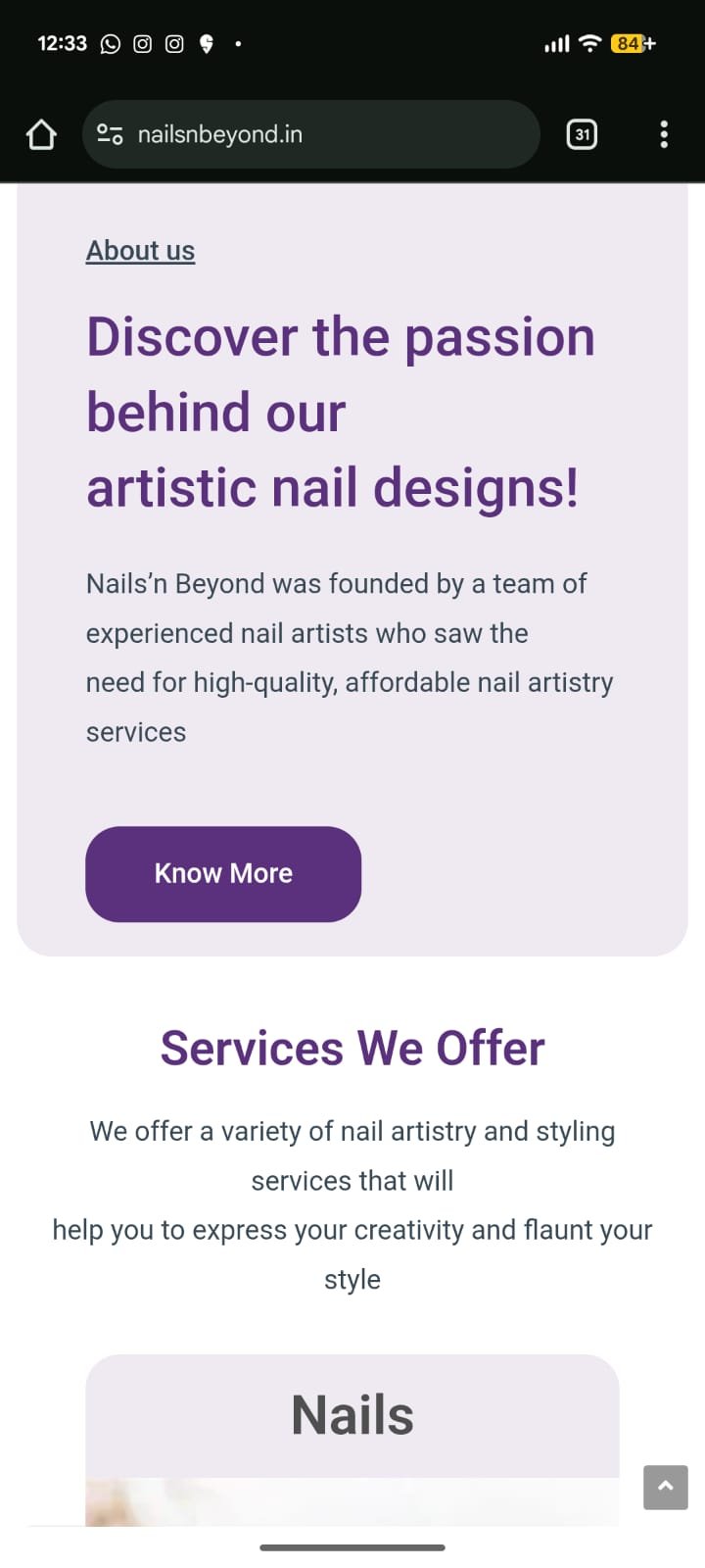 Nails & Beyond is a modern nail studio offering premium nail art, gel extensions, acrylic systems, nail spa treatments, and trending nail designs. With a team of skilled nail technicians and a focus on creativity, hygiene, and luxury service, the brand caters to clients seeking stylish, long-lasting, and artistic nail experiences. As fashion-driven clients rely heavily on digital platforms for inspiration and service discovery, Nails & Beyond required an attractive and well-structured online presence.