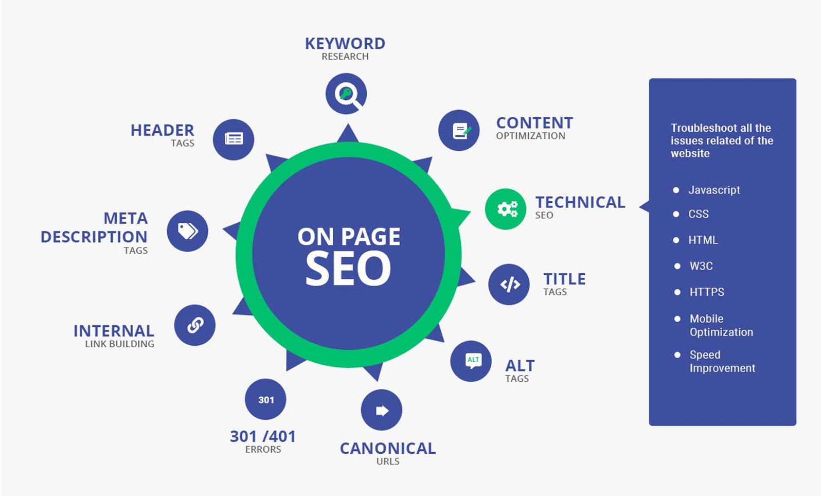Site speed, mobile optimization, crawl errors, and indexation improvements.