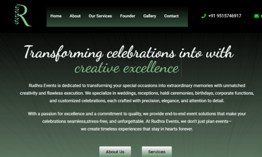 Rudhra Events strengthened its brand presence and client reach with Galaxy Tech Solutions. Through digital transformation, optimized UI/UX, and strategic online positioning, Galaxy Tech enhanced visibility, trust, and credibility, enabling Rudhra Events to showcase its expertise in creating elegant, personalized, and memorable celebrations for weddings, receptions, and special occasions.