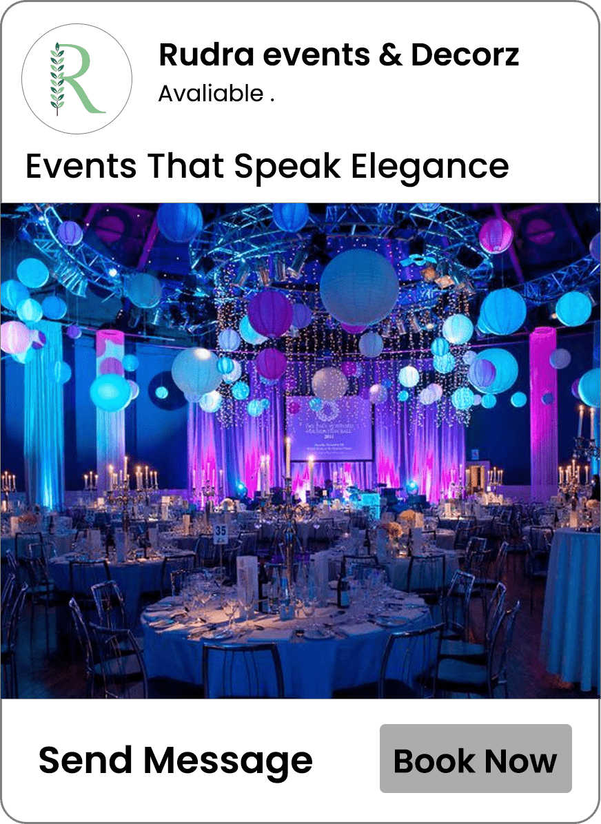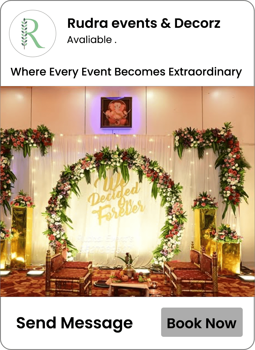 Rudhra Events & Decors transforms every occasion into unforgettable celebrations with personalized event management and decor. From grand weddings to intimate ceremonies, we blend creativity, elegance, and flawless execution to craft memorable experiences for every client. Committed to quality, detail, and joy, Rudhra ensures every event is seamless and extraordinary. Powered by Galaxy Tech Solutions.”