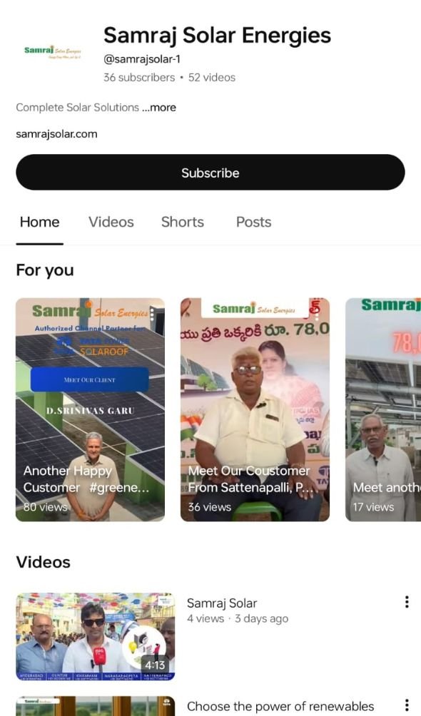“Samraj Solar is a trusted renewable energy company offering end-to-end solar power solutions, including rooftop solar installations, off-grid/on-grid systems, EPC services, and maintenance support for residential, commercial, and industrial clients. The brand is known for quality engineering, reliable installation processes, and a commitment to long-term sustainability. With the rapid adoption of clean energy across India, Samraj Solar needed a professional and informative digital presence to reach and educate customers effectively.”