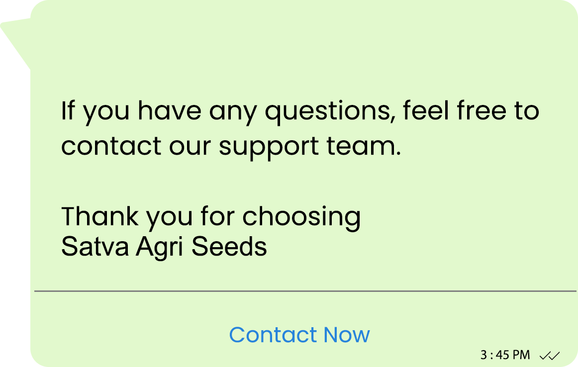 We empower Satva Agri Seeds with Bulk WhatsApp API to deliver instant updates, product launches, farming tips, and customer support. This ensures faster communication, higher engagement, personalized outreach, and real-time connections with farmers, dealers, and partners across regions nationwide efficiently.
