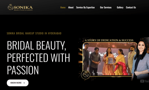 Sonika Bridal Studio & Academy strengthened its brand presence and reach with Galaxy Tech Solutions. Through digital transformation, optimized UI/UX, and strategic online positioning, Galaxy Tech enhanced visibility, client trust, and credibility, enabling the academy to showcase its expertise in bridal makeovers and professional beauty training, empowering brides and aspiring artists to achieve elegance, confidence, and excellence in every service and course.