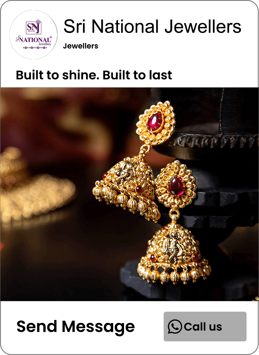 “Sri National Jewellers brings over 30 years of legacy, offering exquisite silver, gemstone, and premium handcrafted jewellery. Known for intricate detailing and South Indian traditional designs, we specialize in wedding jewellery for both brides and grooms, delivering customized pieces that reflect elegance, heritage, and craftsmanship.Powered by Galaxy Tech Solutions.”