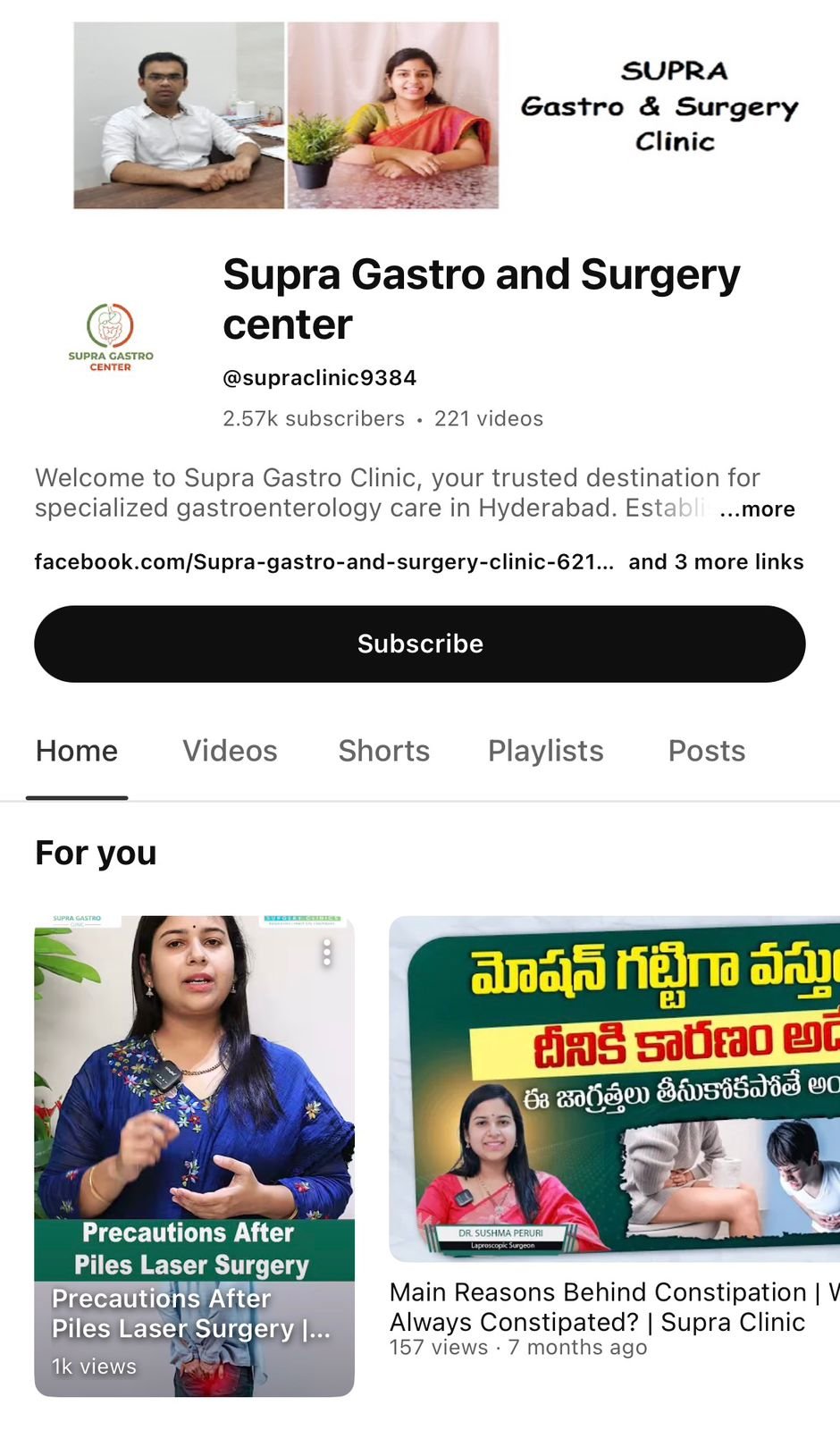 We manage Supra Gastro Clinic’s social media with daily health tips, engaging posts, and strategic content to boost visibility, patient trust, and showcase medical expertise across platforms.