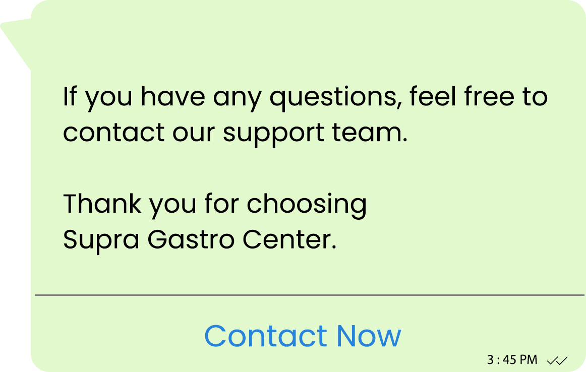 We enable Supra Gastro Clinic to deliver instant health tips, service announcements, appointment reminders, and patient alerts through Bulk WhatsApp API, boosting reach, improving engagement, ensuring timely updates, and building reliable, personalized, and trusted communication with patients every single patient.