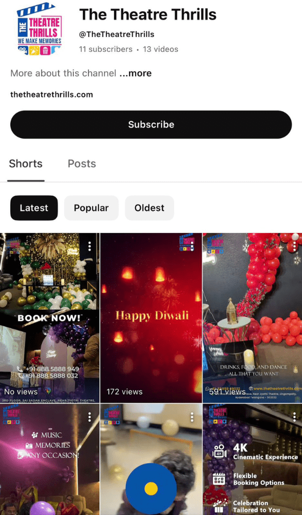 We produce high-quality photos and videos for Theatre Thrills, capturing cinematic setups, celebrations, and decor aesthetics to elevate brand appeal and attract more event bookings.