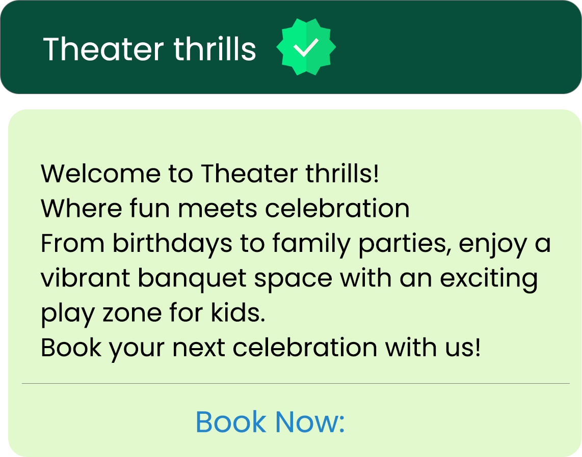 We empower Theatre Thrills with Bulk WhatsApp API to deliver instant event updates, booking reminders, exclusive offers, and personalized messages, driving higher engagement, faster responses, repeat bookings, and stronger customer relationships through reliable, scalable, and automated communication across all touchpoints.