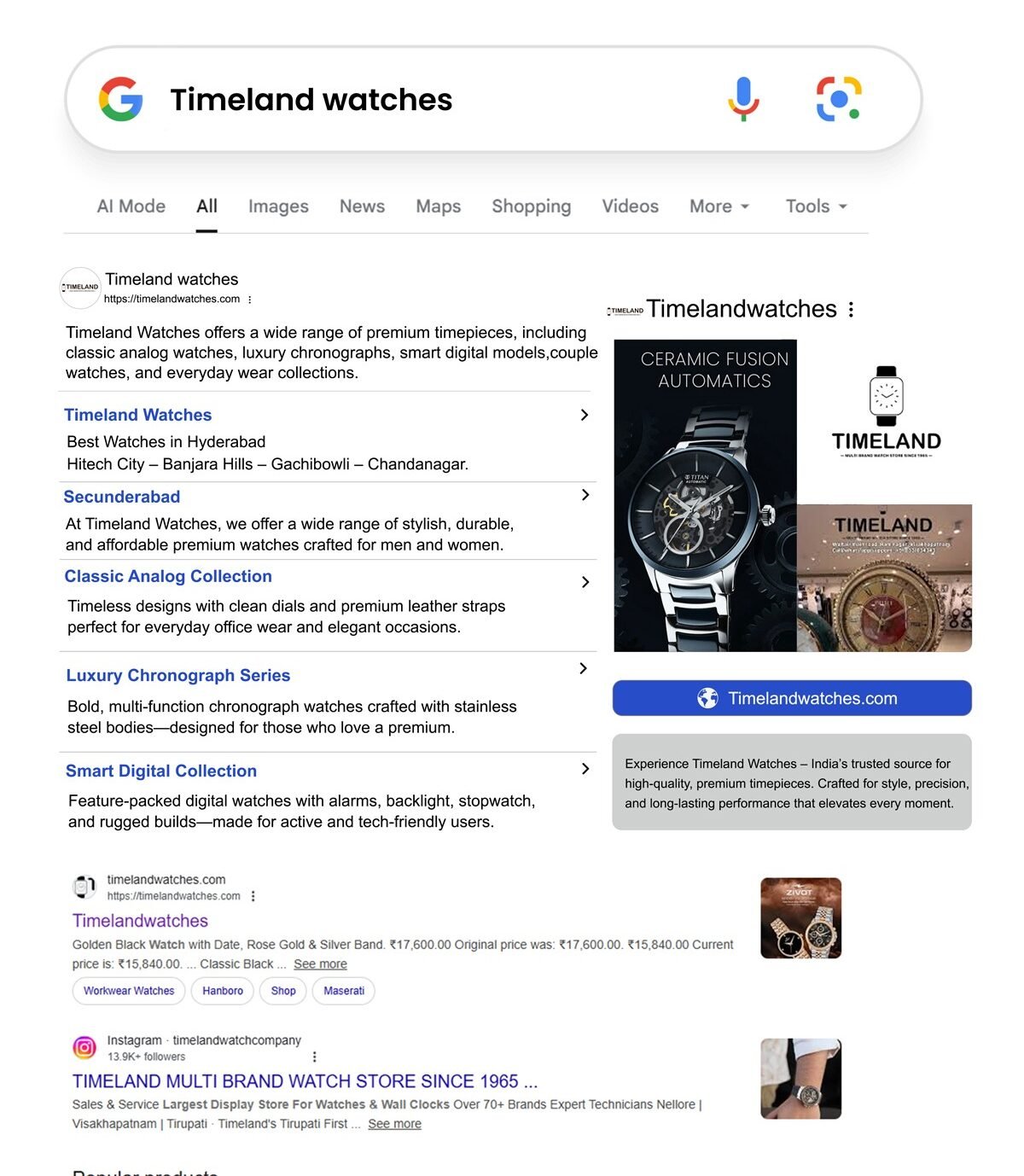 Timeland’s SEO improved with refined optimization, stronger technical structure, and quality backlinks, driving higher rankings, faster indexing, and premium organic traffic.